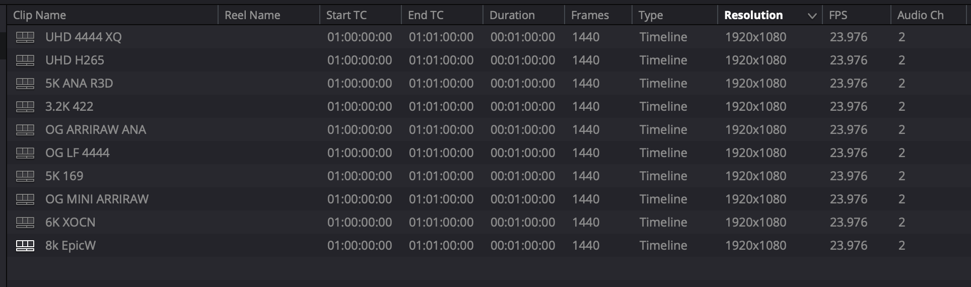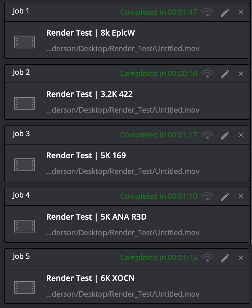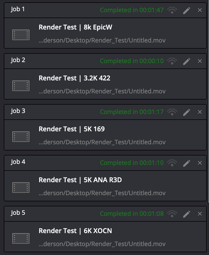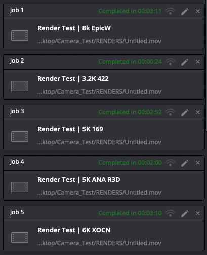 I opted to make 1 minute timelines with different resolutions as well as forcing all the debayering to the highest level upon rendering, just to stress test everything.